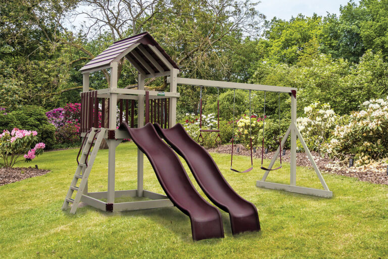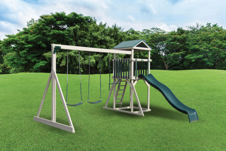 Our selection of custom vinyl swing sets has everything you and your child could dream of. We offer a variety of vinyl swing sets for sale. Choose one with multiple towers, swings, and slides for extra fun, or keep things simple with a classic style.