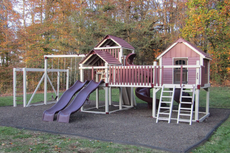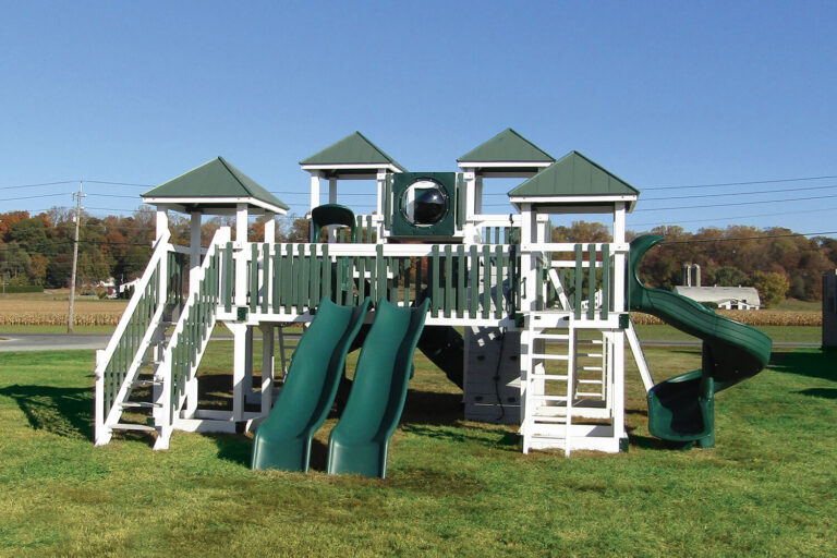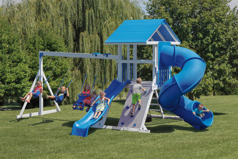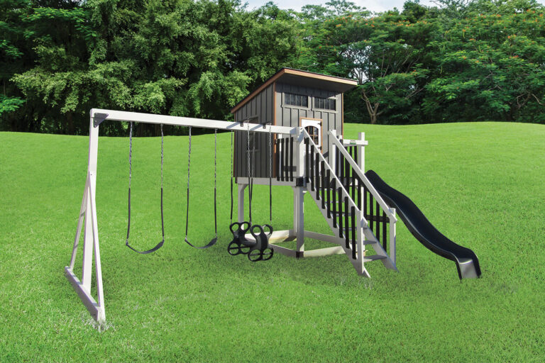 Our Amish-built vinyl swing sets come with a near endless number of combinations and accessories like swings, slides, climbers, gliders, and more. Crafted in Central PA and constructed with fun and safety in mind, we have the wide-range of customizations you’re looking for to fit your home and budget.